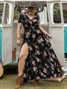 Boho Half Sleeve Floral V Neck Maxi Dress