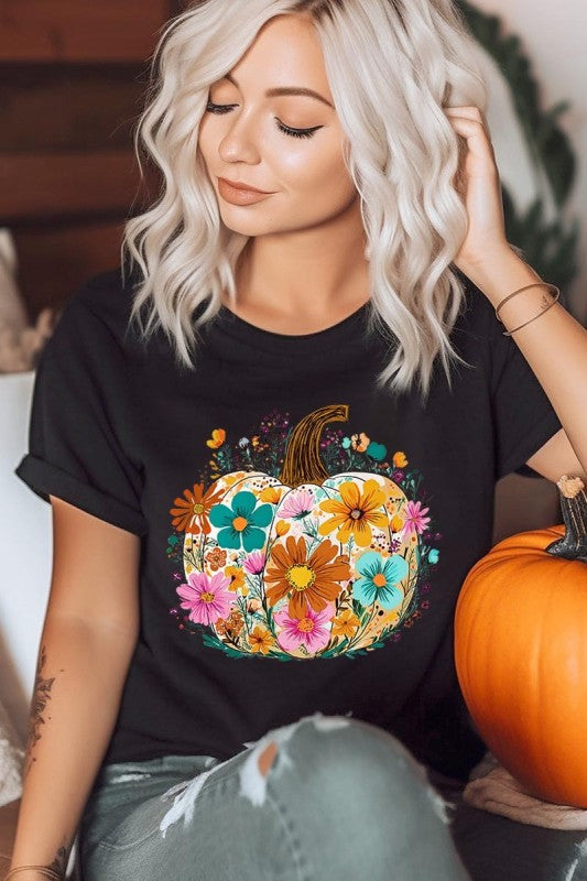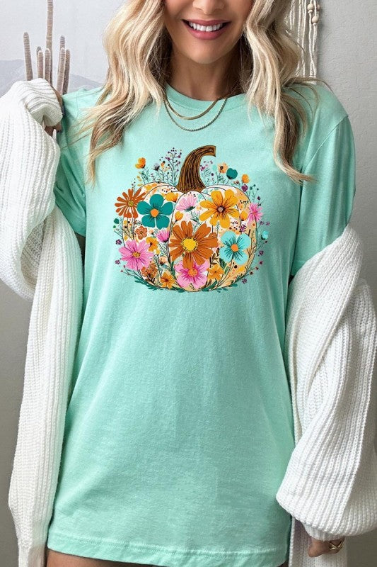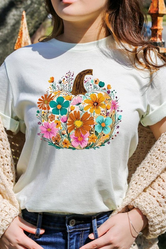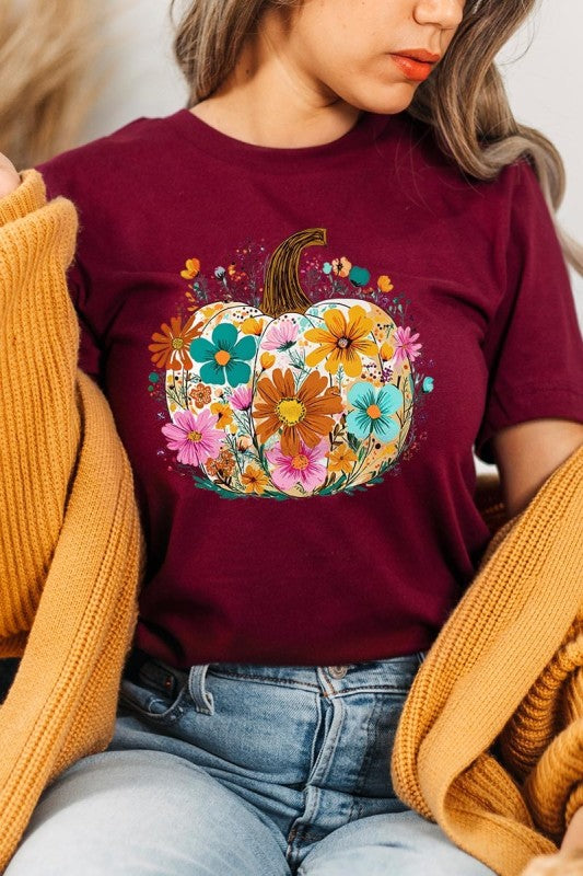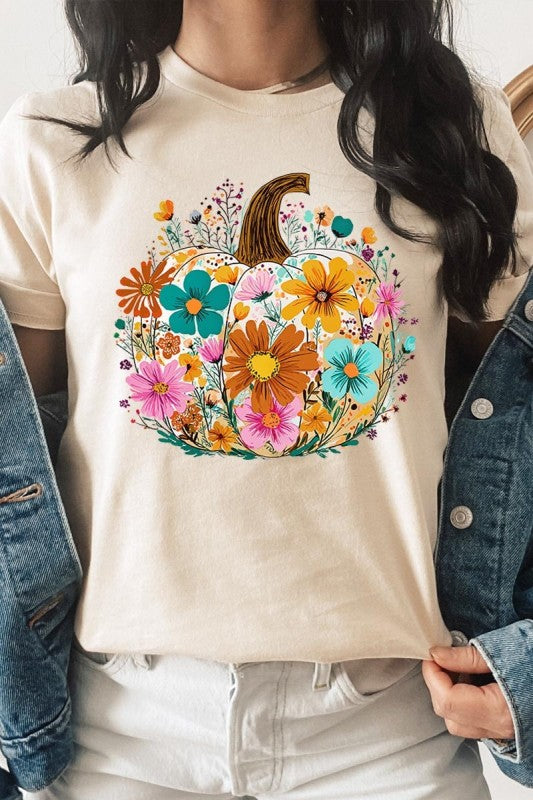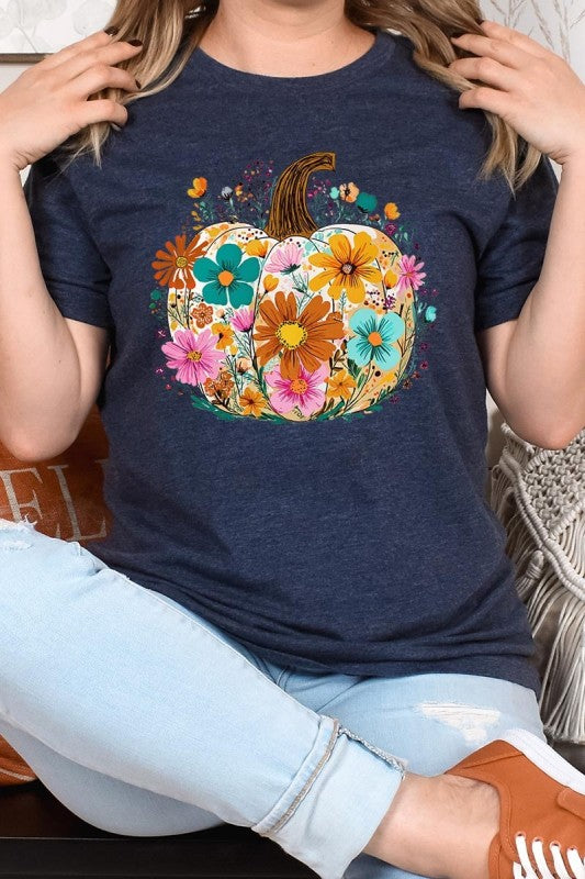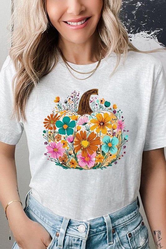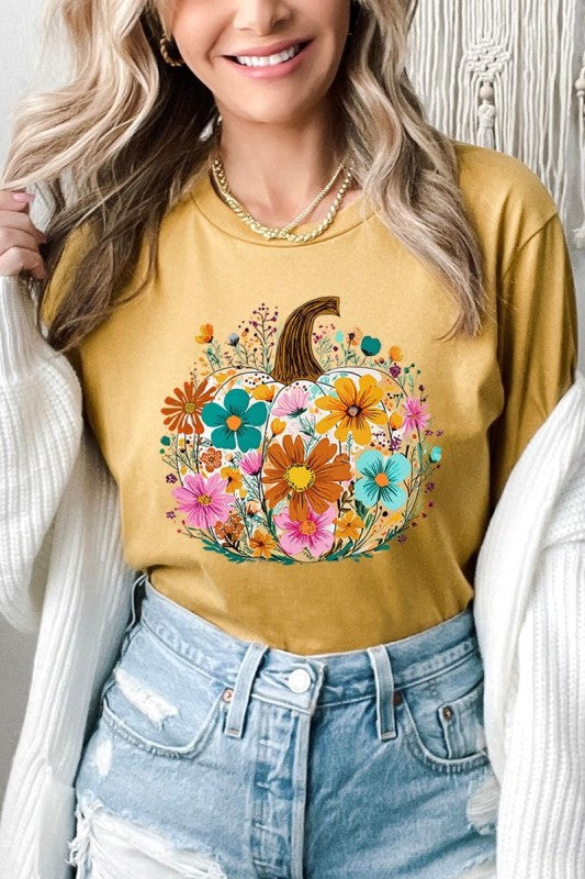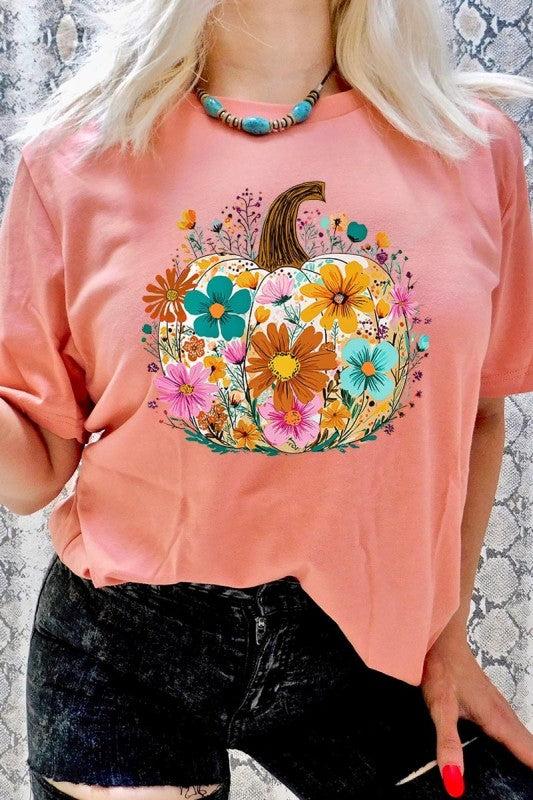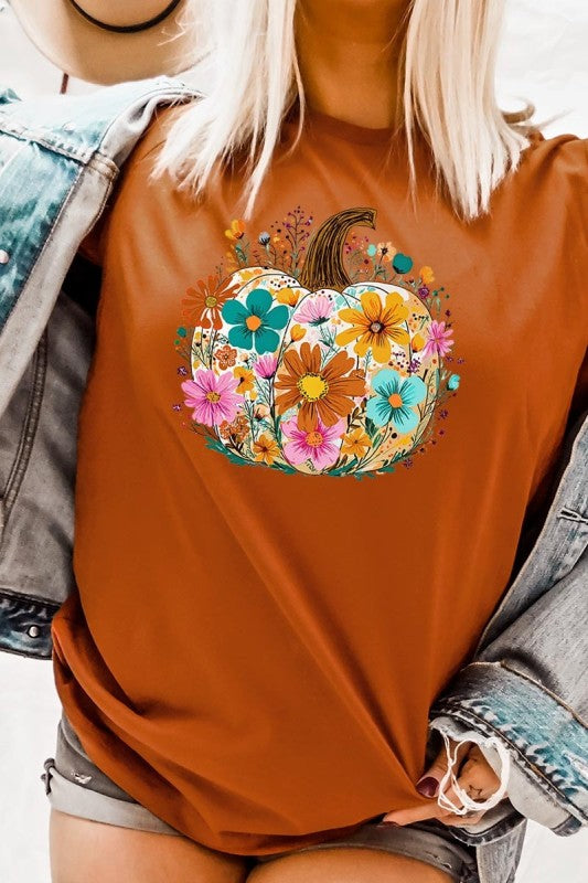 Boho Fall Pumpkin Shirt, Preppy Fall, Retro Autumn Flowers, Pumpkin Season Graphic Tee.