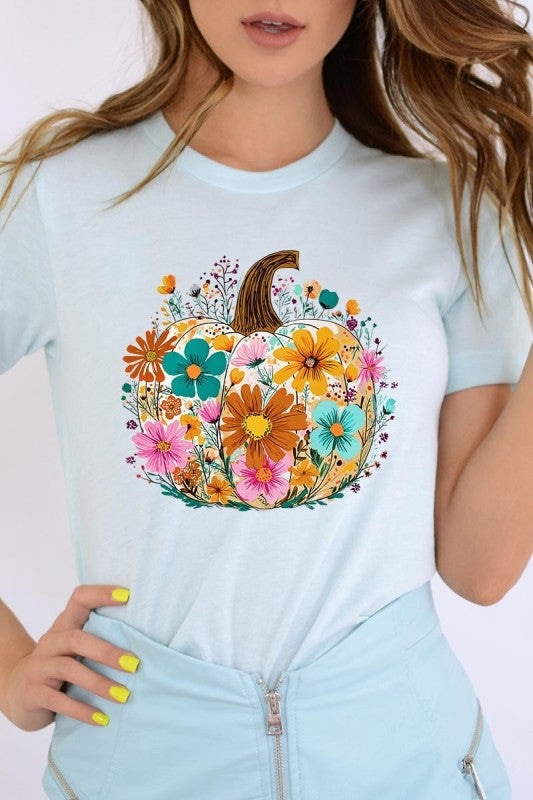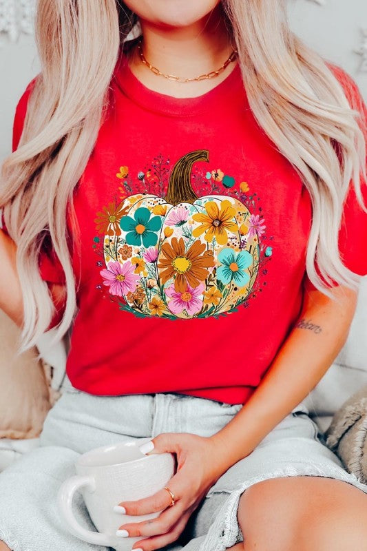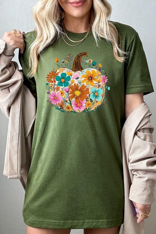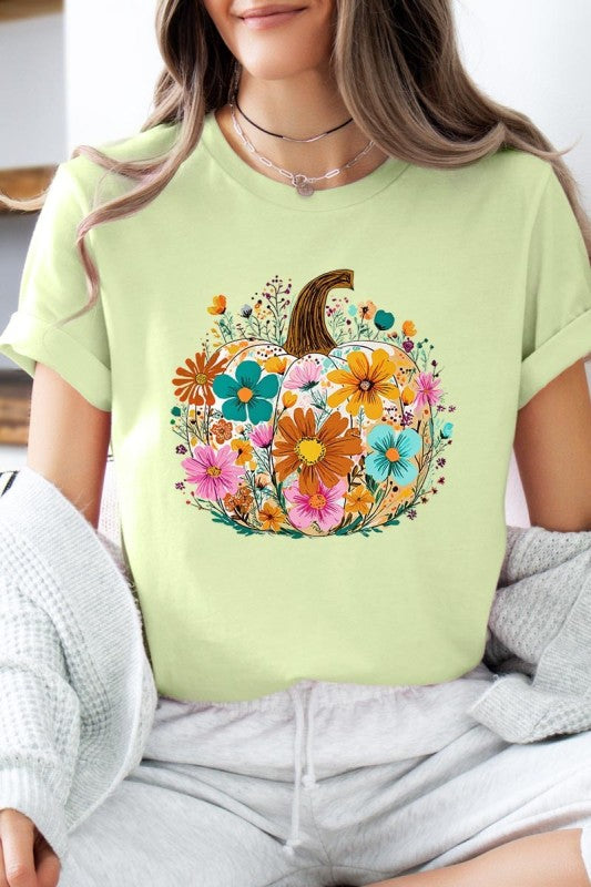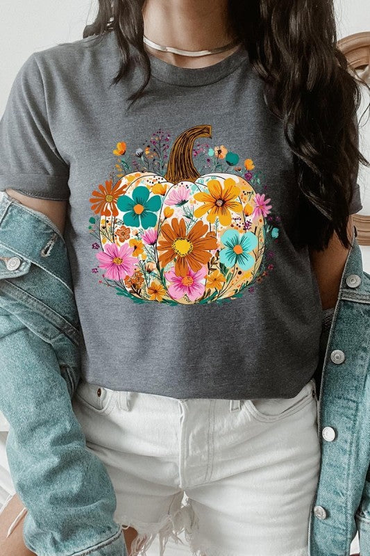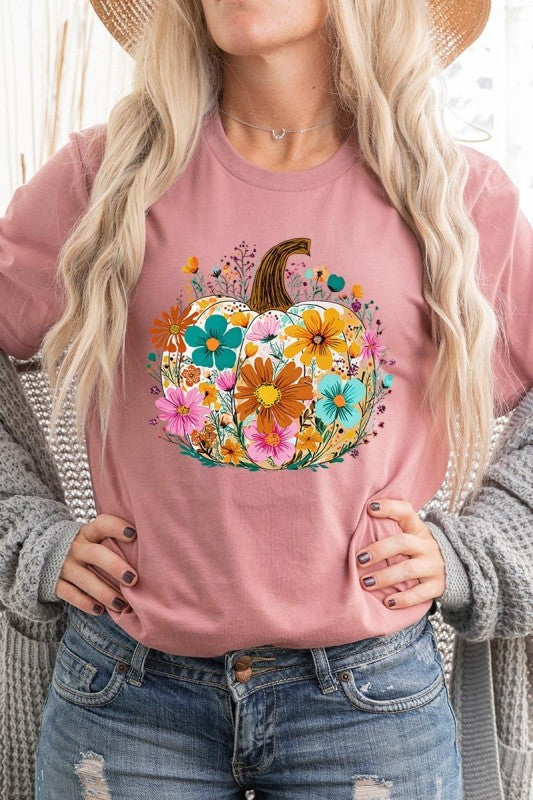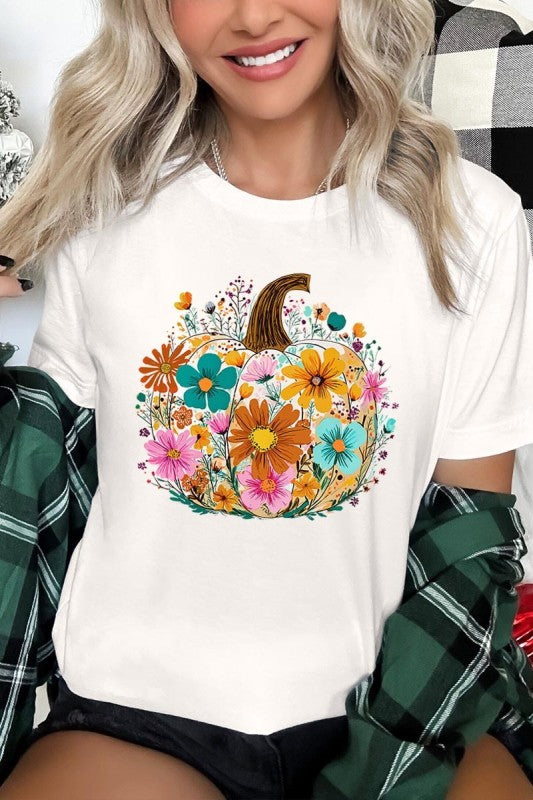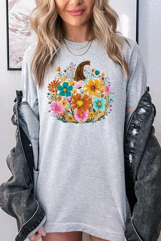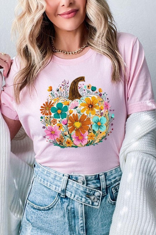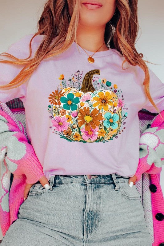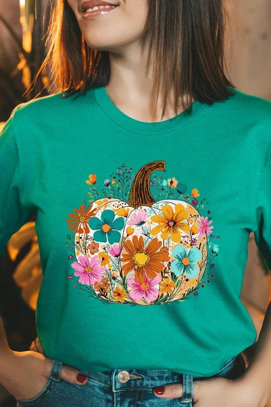 Boho Fall Pumpkin Shirt, Preppy Fall, Retro Autumn Flowers, Pumpkin Season Graphic Tee.