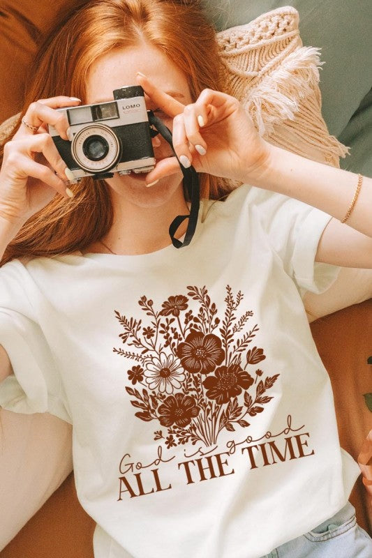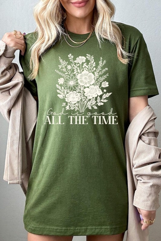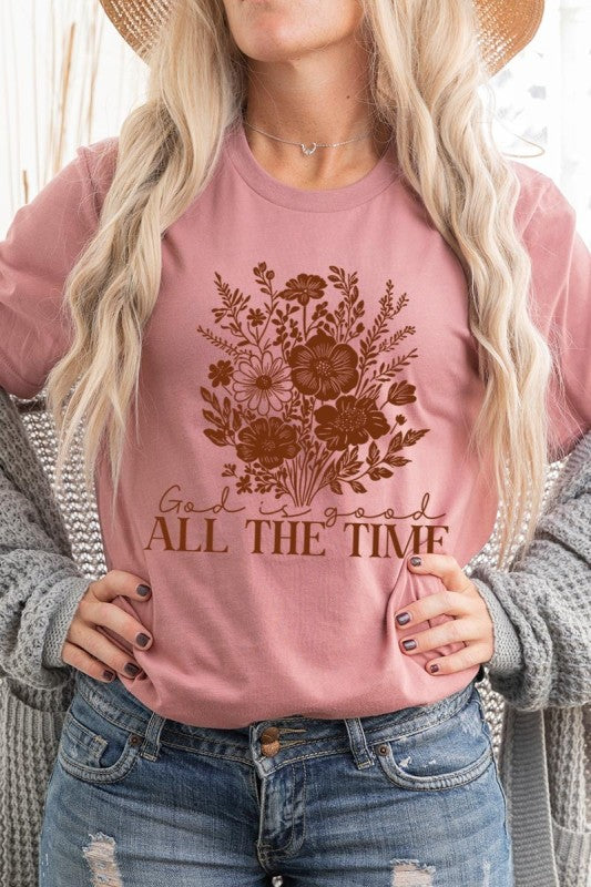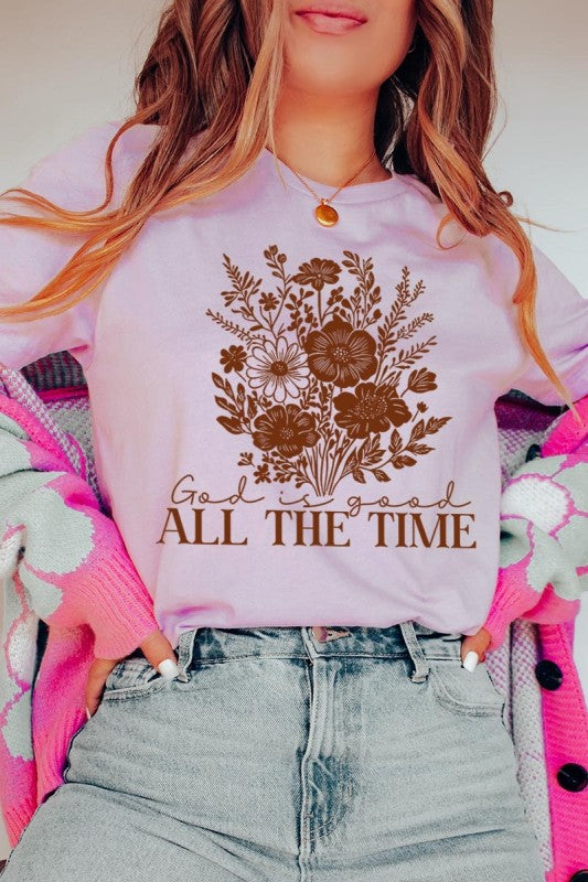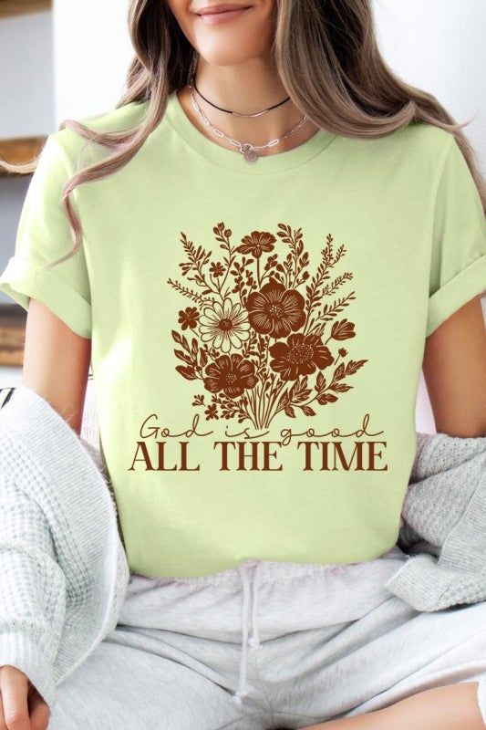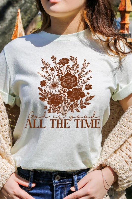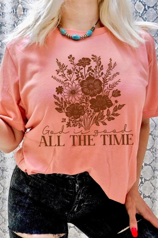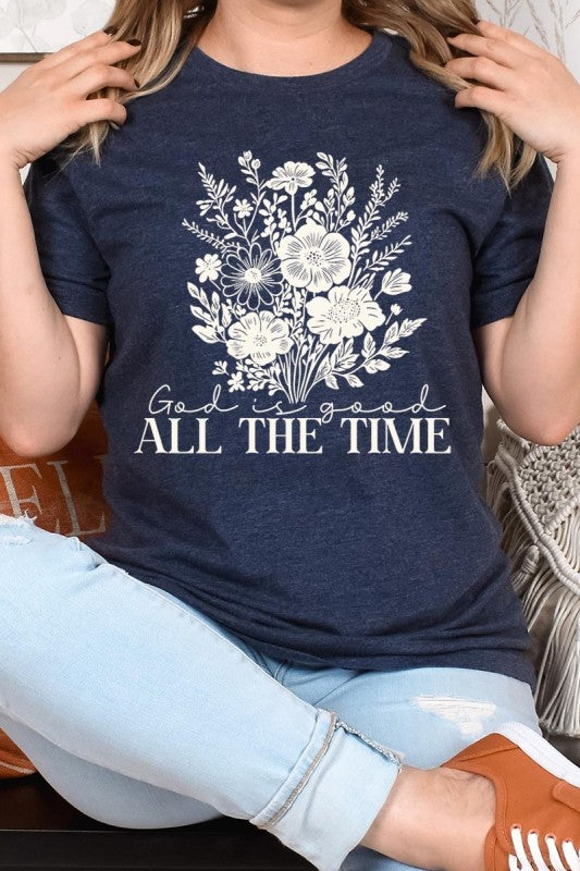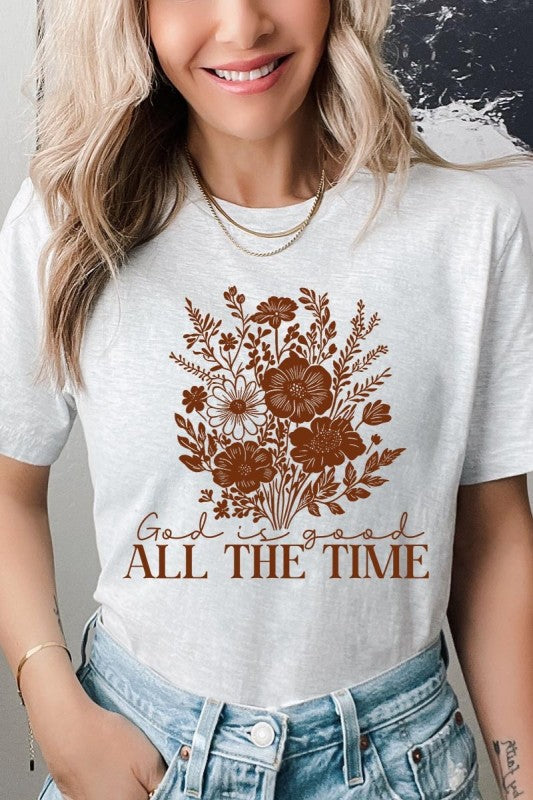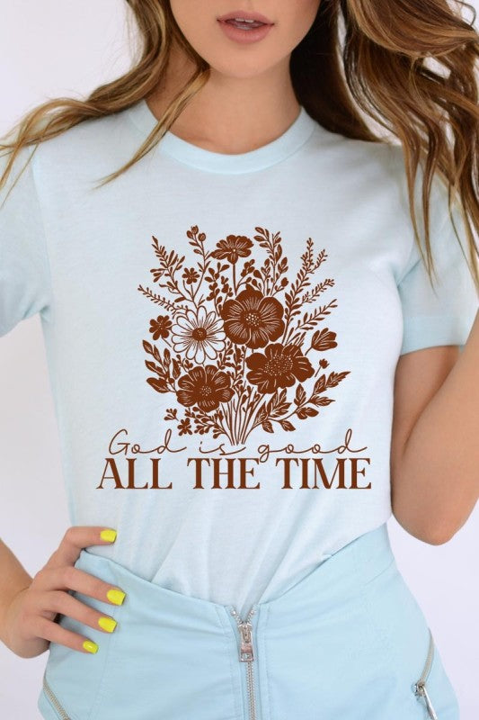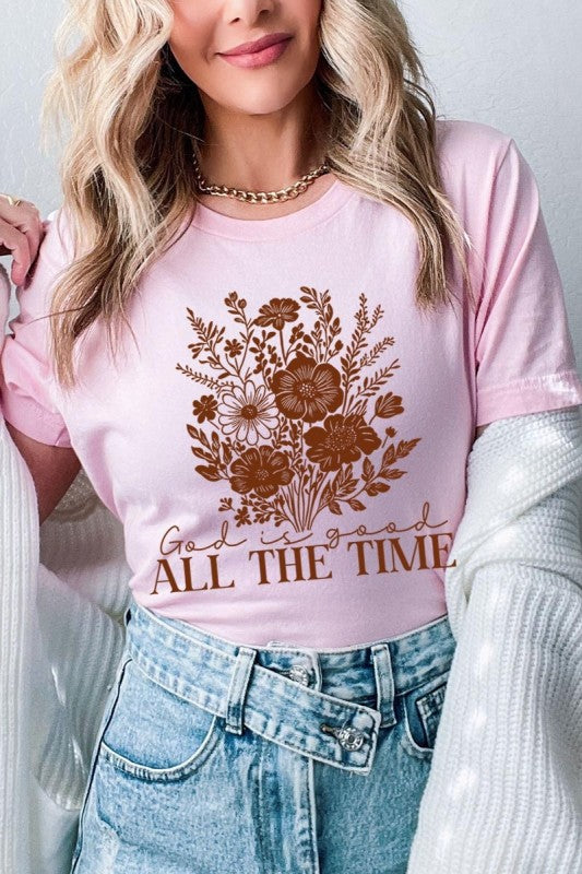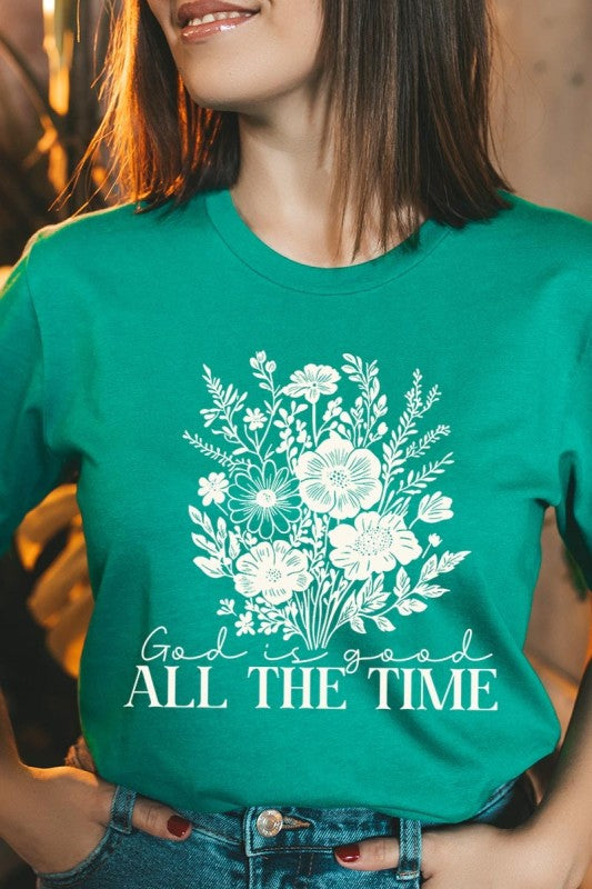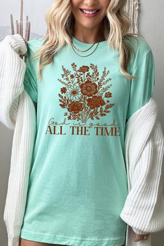 faith shirt, Christian tee, inspirational shirt, God is good, floral graphic tee, Bible verse shirt, religious shirt, scripture tee, spiritual tee, pastel shirt, modest fashion, Sunday tee, women's faith apparel, uplifting message Graphic Tee.