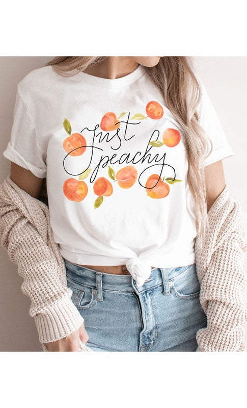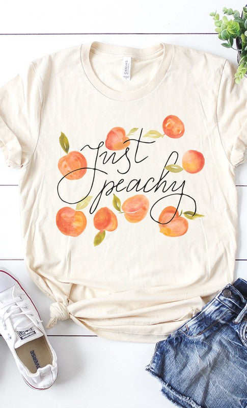 Vintage Just Peachy Graphic Tee. White and Cream are 100% airlume combed and ringspun cotton, Ash is 99/1 airlume combed and ringspun cotton/polyester