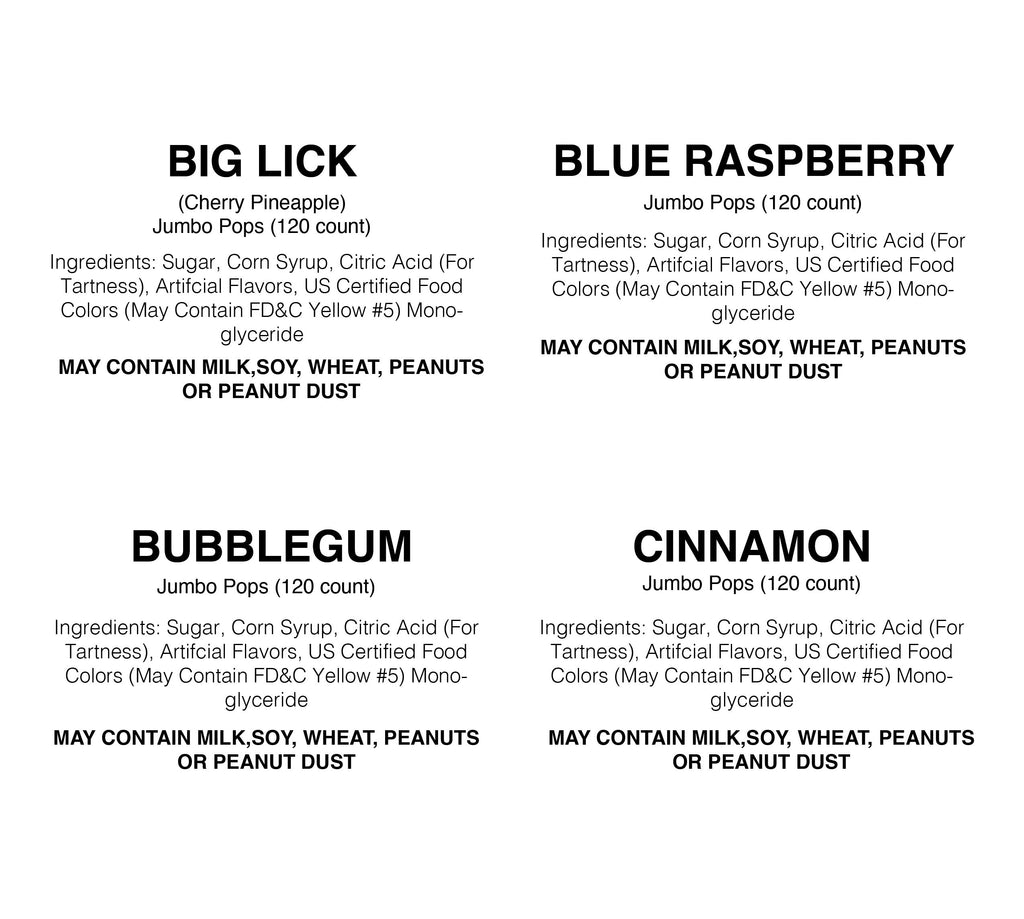 A single wrapped Jumbo Pop, over 40 flavors to choose from.