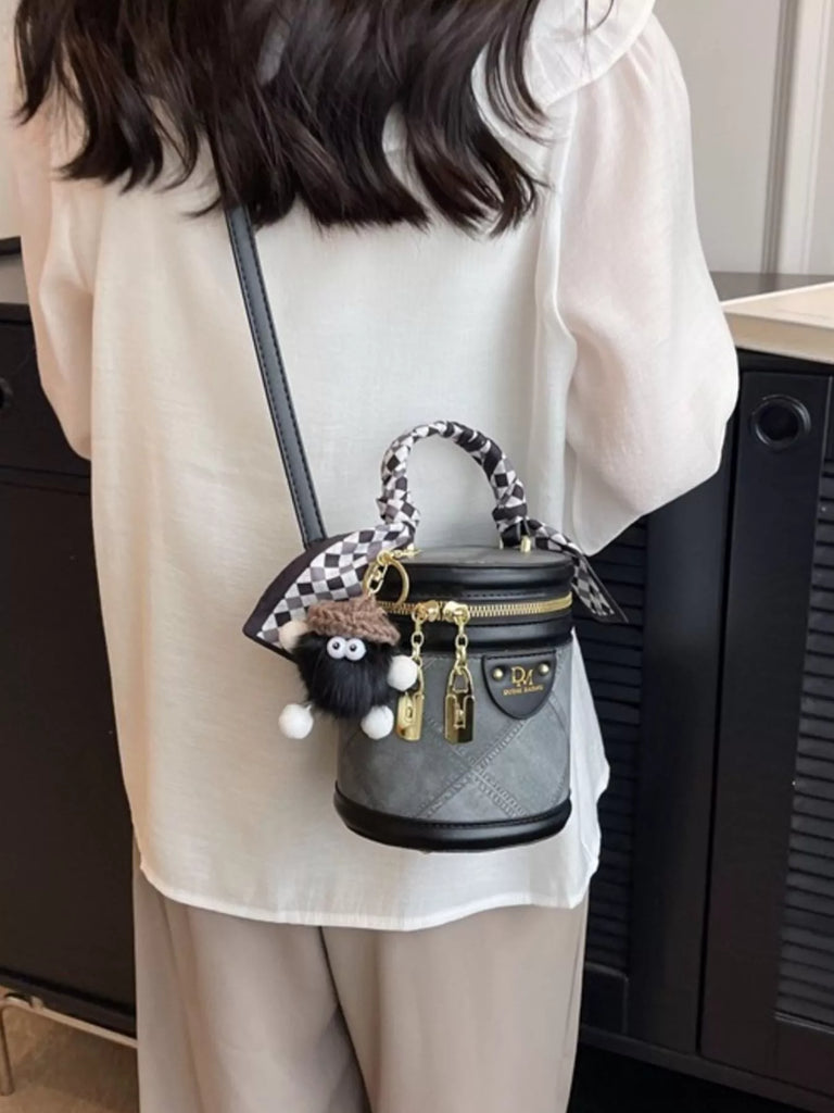 Bucket Crossbody Bag with Scarf Accent