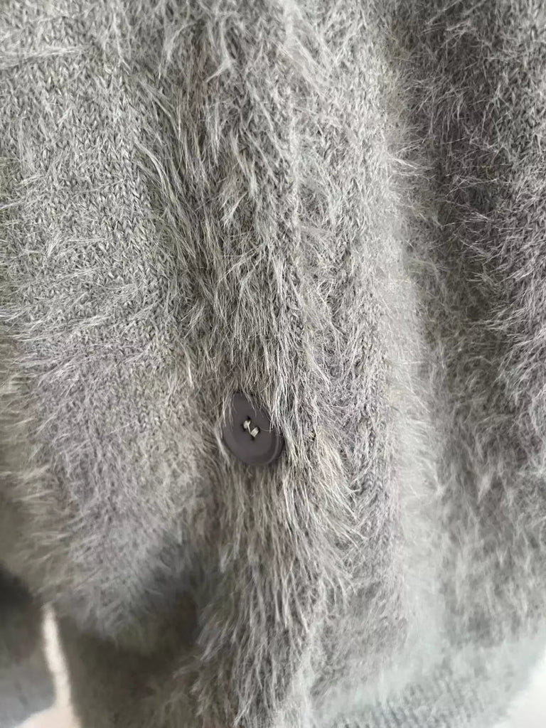 V Neck Button Down Fuzzy Knit Mohair Cardigan