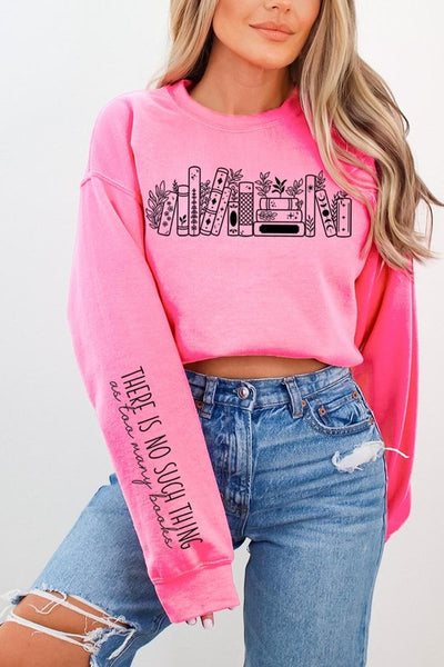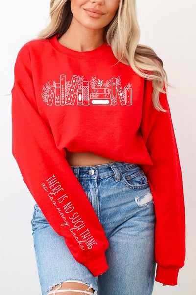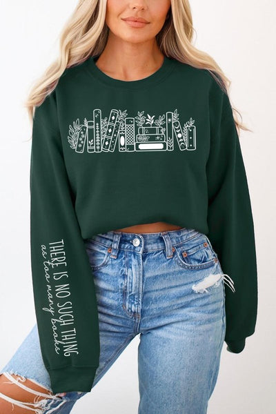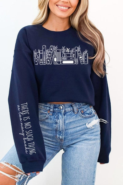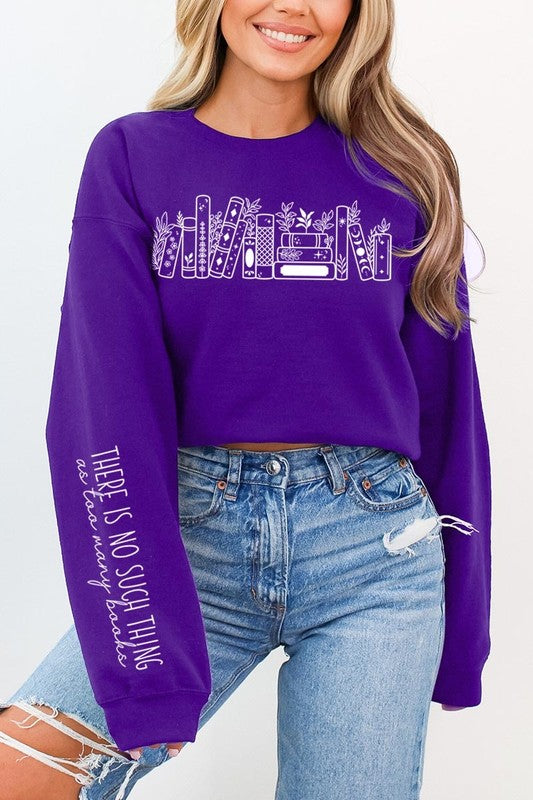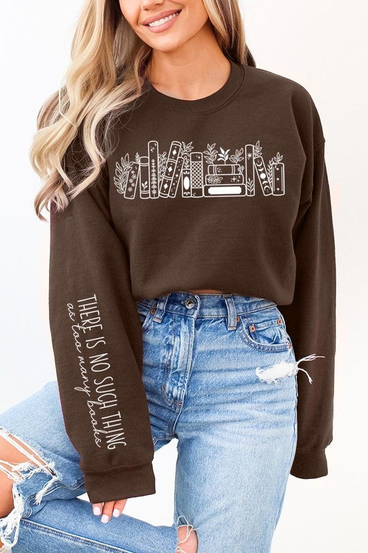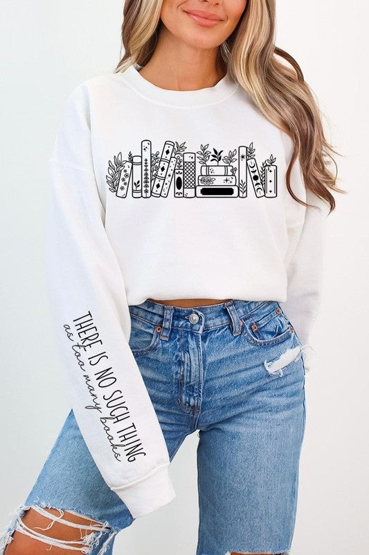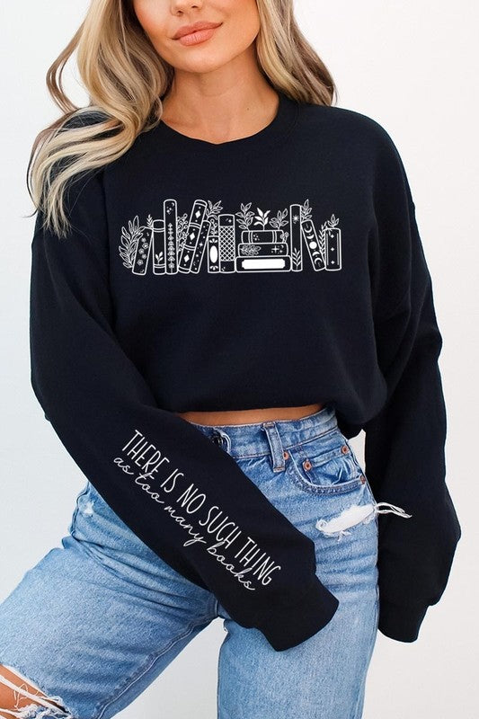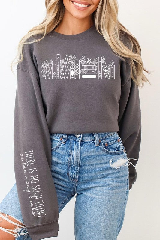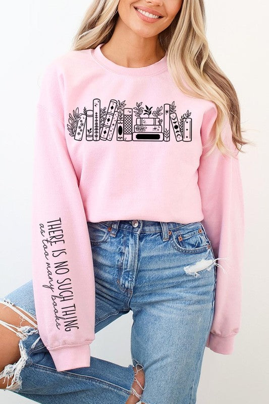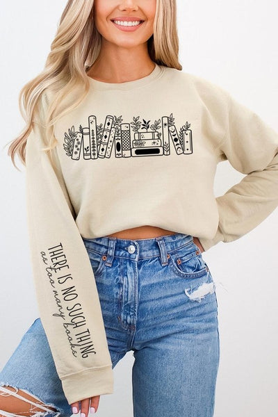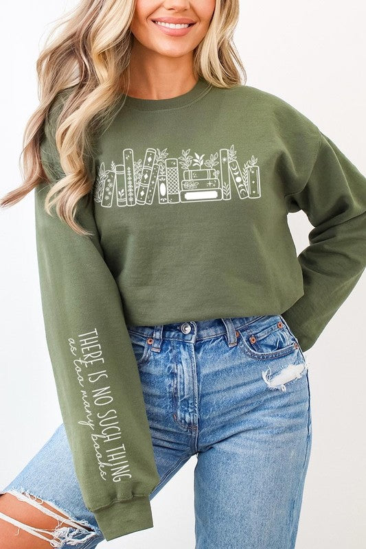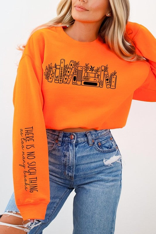 There Is No Such Thing As Too Many Books Sleeve Printed Graphic Fleece Sweatshirts.