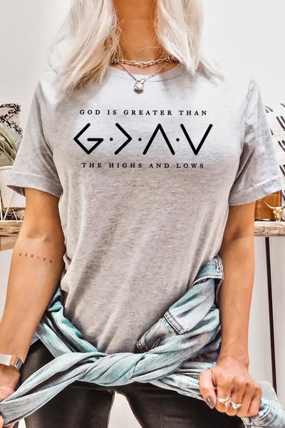God is Greater Than High And Lows, Bible Verse, Romans 8:28, Faith over Fear, Believer, Easter, Christian, Jesus, Religious, Graphic Plus Size Tee.
