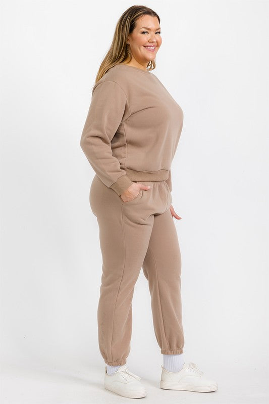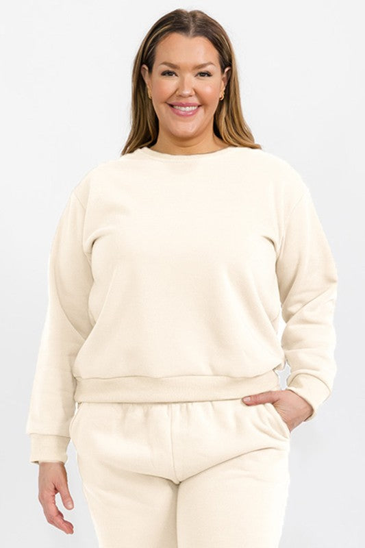 plus size fleece pullover, plus crewneck sweatshirt, cozy plus size top, relaxed fit sweater, warm fleece loungewear, casual plus fashion, everyday essential